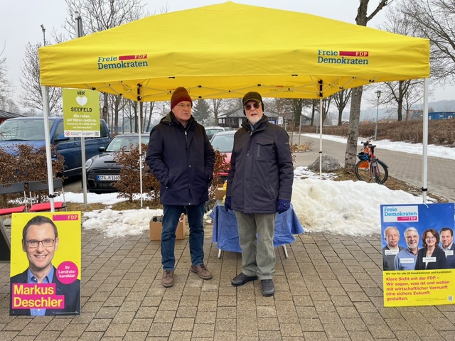 Stände in der Wirklichkeit haben wir schon häufig gemacht; hier ein Bild vom aktuellen Winterwahlkampf. Aber jetzt in der kalten Jahreszeit und im Zeichen der Digitalisierung laden wir gerne auch ONLINE zum Kennenlernen ein. Wir freuen uns schon über Ihre Teilnahme beim 1. ONLINE-Stand der FDP Seefeld.